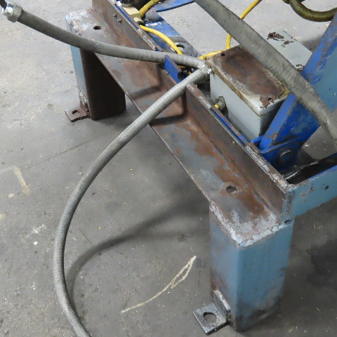 - There is no tag on this lift, it has some modifications to note: Some frame modifications/reinforcements, welded bars, welded risers onto base, roller turn table top etc.
