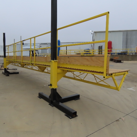 - 44" height hand rail on scaffold, open one end for bus, RV, exterior finishing work