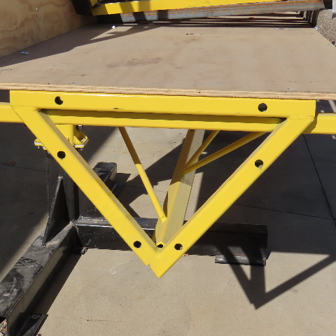 - Forklift lifts platform and pins are set to hold scaffold at desired height