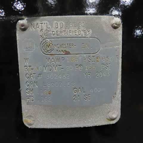 400 Gallon Vertical Compressed Air Receiver Storage Tank 165PSI (New Paint)