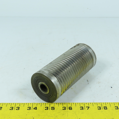 4.45" OAL x 2.0" OD Grooved Aluminum Idler Roller Bearing Mounted 1/2"