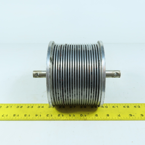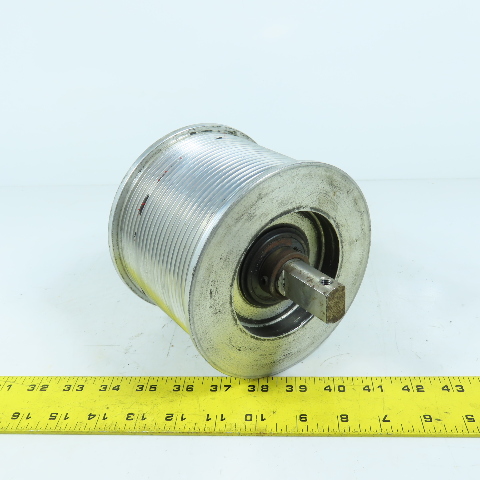 4.45" OAL x 6.0" OD Grooved Aluminum Idler Roller Bearing Mounted 3.5" BF