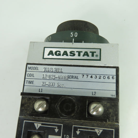 Agastat 7012L7ELL On-Delay Timer Relay 120V 20-200 Sec.
