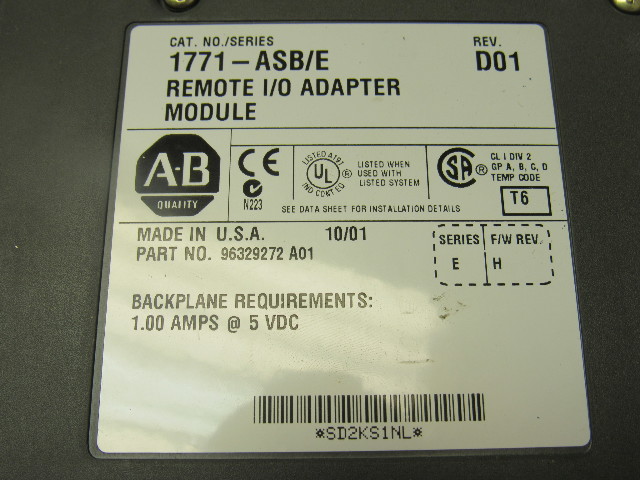 A-B Allen Bradley 1771-ASB/E Rev. D01 Remote I/O Adapter Module