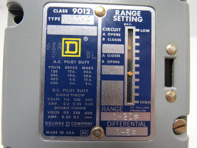 A-B Allen Bradley ACW-4 9012 Series B Industrial Pressure Switch 1-20 PSI 55014