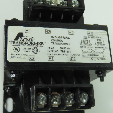 Acme TB81201 75VA Transformer 220/230/240/440/460/480V Pri 110/115/120V Sec