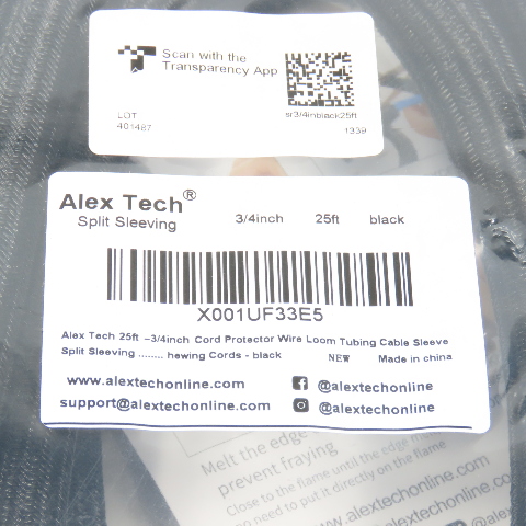 Alex Tech X001UF33E5 3/4 inch x 25' Long Wire Loom Protective Split Sleeving