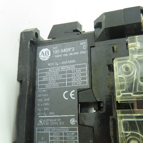 Allen-Bradley 100-A45N*3 3-Pole Motor Contactor 600VAC 45A 120V Coil