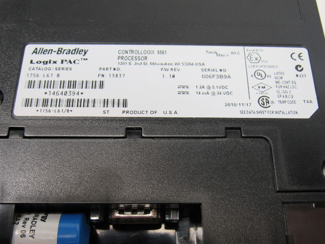 Allen Bradley 13837 1756-L61 Ser B ControlLogix Logix5561 Processor Rev 1.10