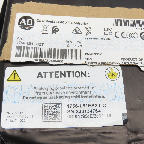 Allen Bradley 1756-L81ES XT Ser. C FW 1.072 Guardlogix 5580 XT Controller