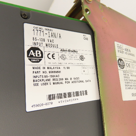 - Input Modules: (2) 1771-IAN Series A 85-138 VAC Input Modules