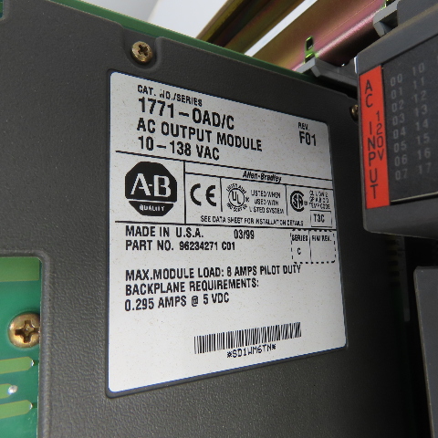 - AC Output Modules: (2) 1771-OAD Series C 10-138 VAC AC Output Modules