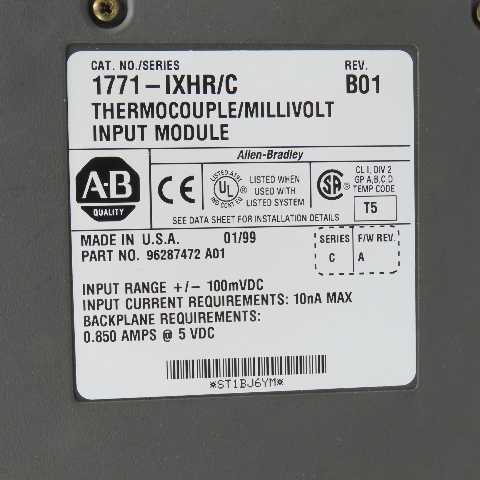 Allen Bradley 1771-IXHR/C 96287472 Thermocouple / Millivolt Input Module Rev B01