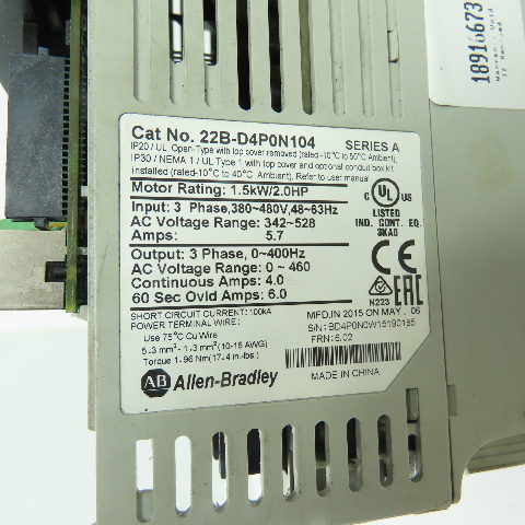Allen-Bradley 22B-D4P0N104 Ser A 2HP/1.5KW PowerFlex Variable Frequency Drive