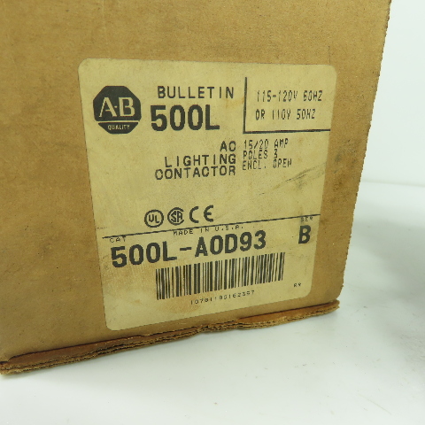 Allen-Bradley 500L-AOD93 Ser B 3-Pole Lighting Contactor 15/20A 115-120V Coil