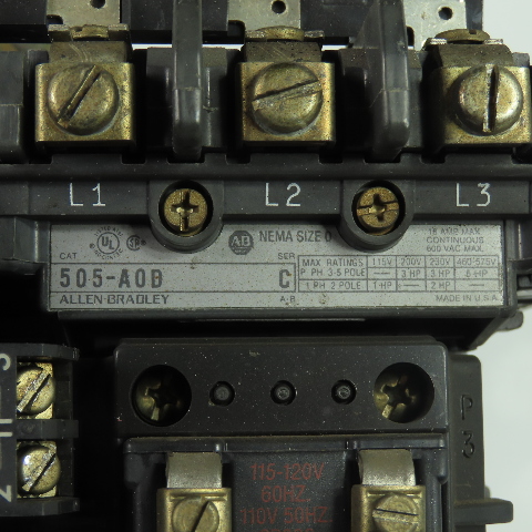 Allen-Bradley 505-A0D Size 0 Reversing Motor Starter Contactor 600V 18A SerC