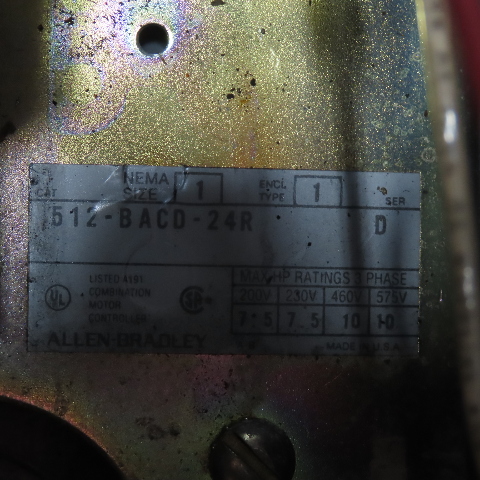 Allen-Bradley 512-BACD-24R NEMA Size 1 Combination Motor Controller 10HP