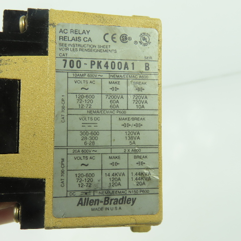 Allen-Bradley 700-PK400A1 4-Pole Master Control AC Relay 115-120V 60Hz 10A