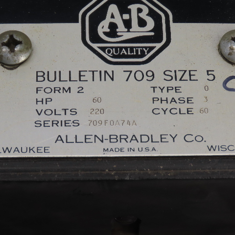 - Allen-Bradley Bulletin 709 Size 5 motor starter, Series 709F0A74A