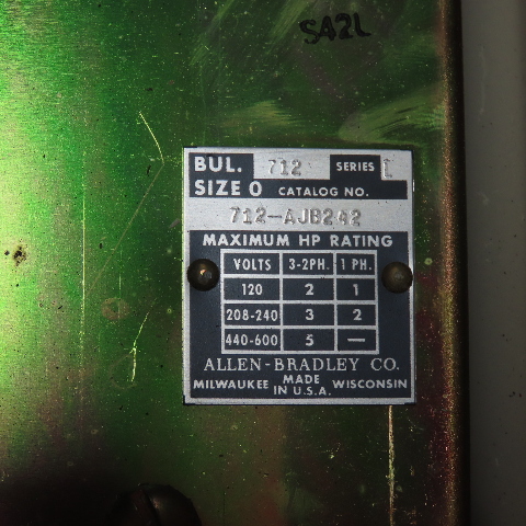 Allen-Bradley 712-AJB242 Size 0 Combination Motor Starter 600VAC Ser L