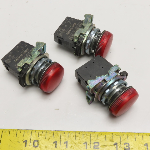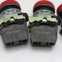 Allen-Bradley 800F-N3R Red Indicator Pilot Lights 24V Lot of 3