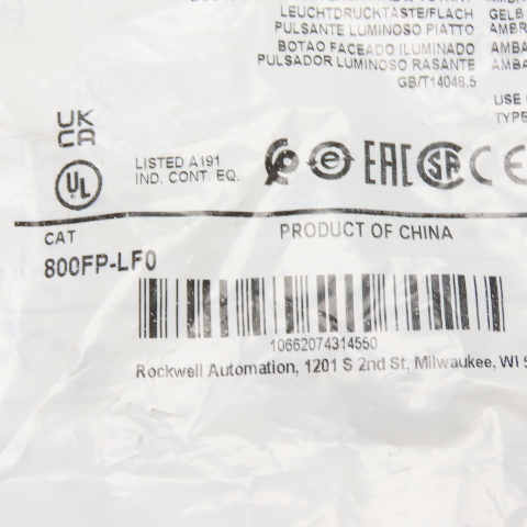 Allen-Bradley 800FP-LF0 Amber Illuminated Flush Push Button Operator