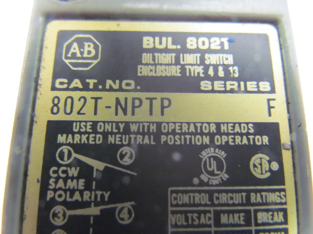 Allen Bradley 802T-NPTP Ser F Nema 4/13 neutral position limit switch oiltight
