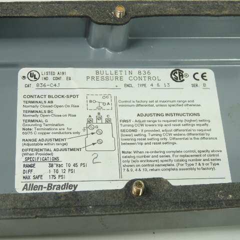 - Allen-Bradley Bulletin 836 pressure control switch