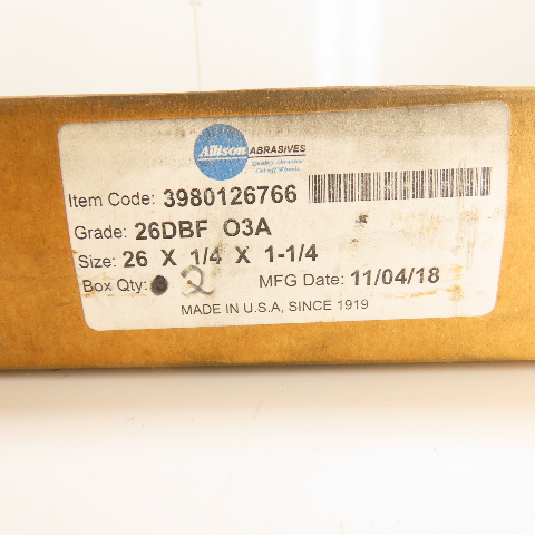 Allison 3980126766 26" x 1/4" x 1-1/4" Abrasive Cut-Off Wheels Grade 26DBF Lot/2