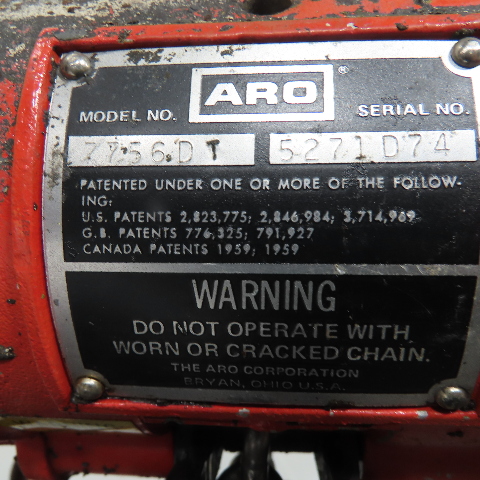 ARO 7756DT 1/2 Ton 1000LB Air Pneumatic Chain Hoist 10' Lift W/ Pendant