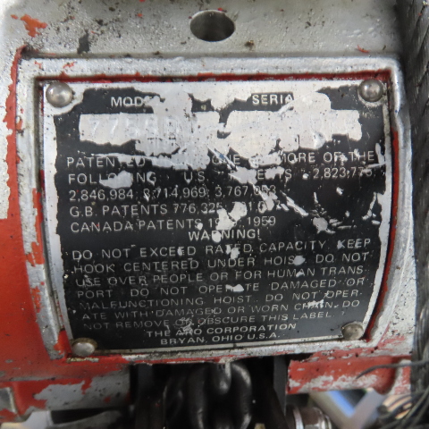 ARO 7756DT 1/2 Ton 1000LB Air Pneumatic Chain Hoist 12' Lift W/ Pendant