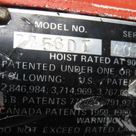 ARO 7756DT 1/2 Ton Air Hoist 10' Travel Pendant Operated