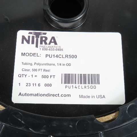 Automation Direct Nitra PU14CLR500 Clear Polyurethane Tubing 1/4" OD x 400' L