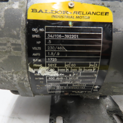 Baldor 34J106-3922G1 .5HP Electric Motor 230/460V 3Ph 1725RPM 56YZ Fr. Tested