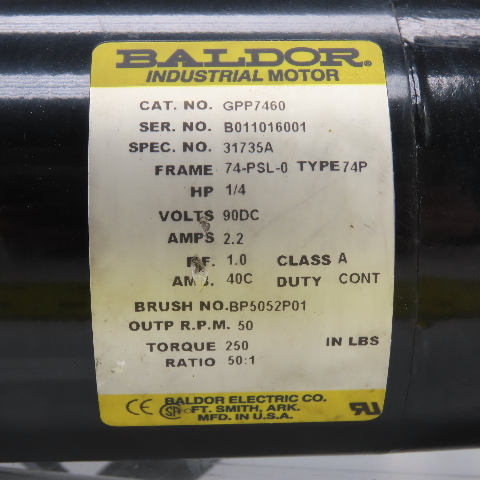 Baldor GPP7460 50:1 Ratio Parallel 90VDC Gear Motor 1/4HP 50RPM 3/4"Shaft Tested