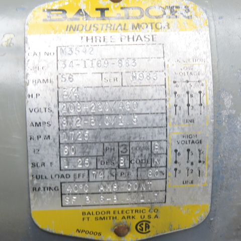 Baldor M3542 3/4HP Electric Motor 208-230/460V 3Ph 1725RPM 56 Frame