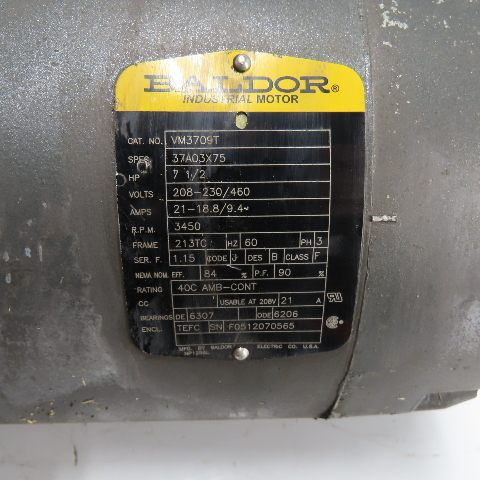 Baldor VM3709T 7.5HP Electric Motor 208-230/460V 3Ph 3450RPM 213TC