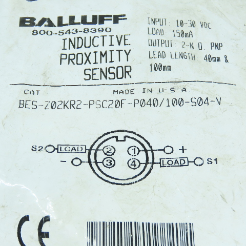 - Balluff inductive proximity sensor model BES-Z02KR2-PSC20F-P040/100-S04-V