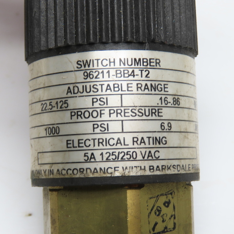 Barksdale 96211-BB4-T2 Adjustable Pressure Switch 22.5-125 PSI