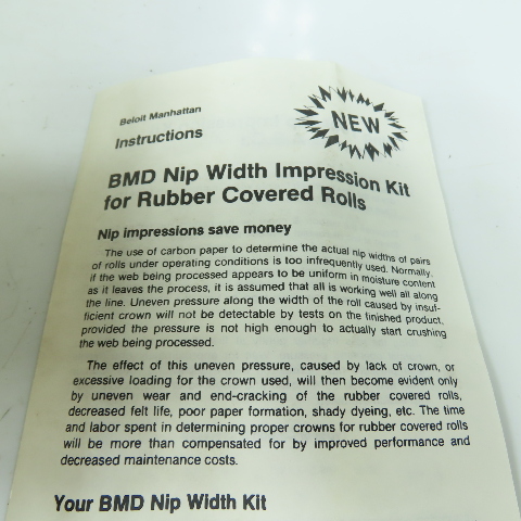 Beloit Manhattan 65-50-0290 Nip Width Impression Kit For Rubber Covered Rolls
