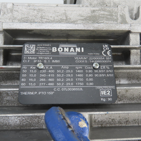 Bonani TR160L4 15kW AC Electric Motor 230/460-480V 3PH 160L Frame Tested