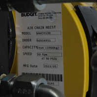 Budgit BAHC0130 1 Ton 2000LB Pneumatic Air Chain Hoist 30FPM 90 PSIG 20'Lift NEW