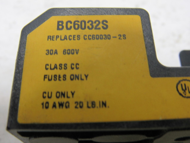 Buss BC6032S Class CC 2 Pole Fuse Block Holder 30A-600V 10 AWG