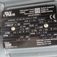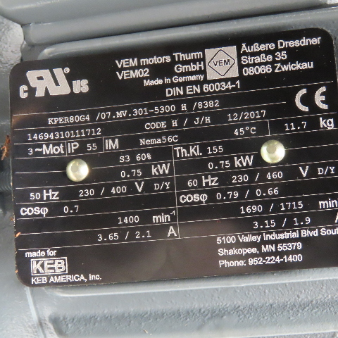 - Motor is VEM Motors For KEB America 0.75kW 230/460V