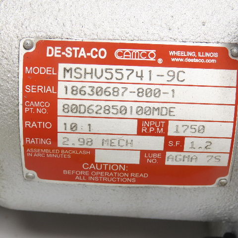Camco 601RDM6H24-270 10:1 Roller Dial Index Drive .75kW 230/460V 6 Stop 270°