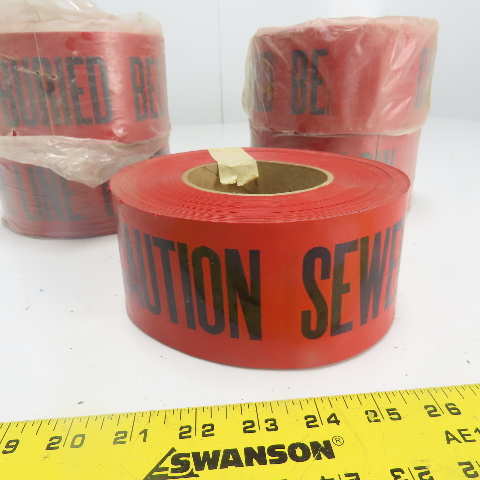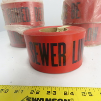 Caution Sewer Line Buried Below Caution Tape 3" Wide Lot Of 5 Rolls