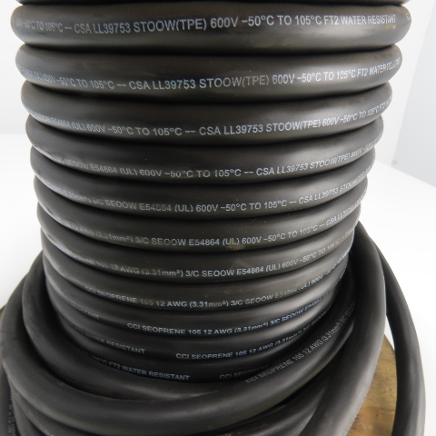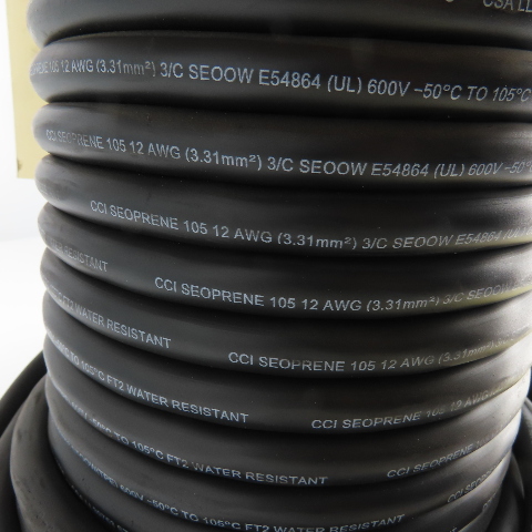 CCI Seoprene 12AWG 3/C Black Strand Copper Wire Water Resistant 600V 116'