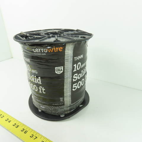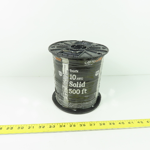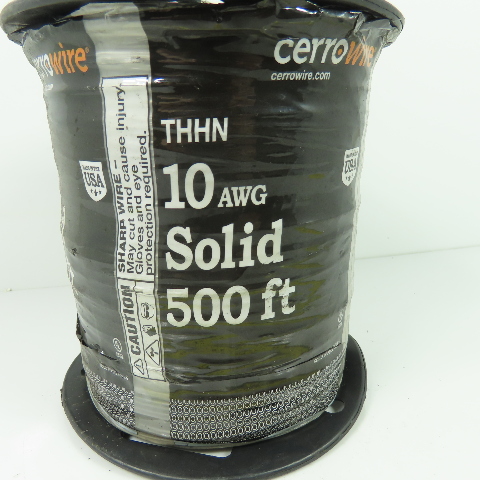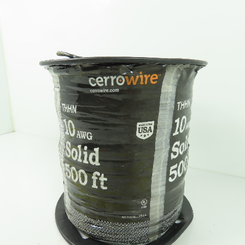 Cerrowire 10AWG Solid Copper THHN Black Wire Cable 500'