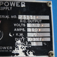 Clinton Power S109CPF DC Power Supply Rectifier 0-9V 100A 220V 1Ph