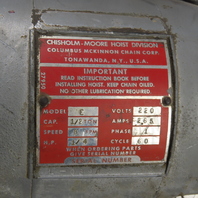 CM Lodestar Model E 1/2 Ton Electric Chain Hoist 220V 1Ph 8 FPM 10' Lift